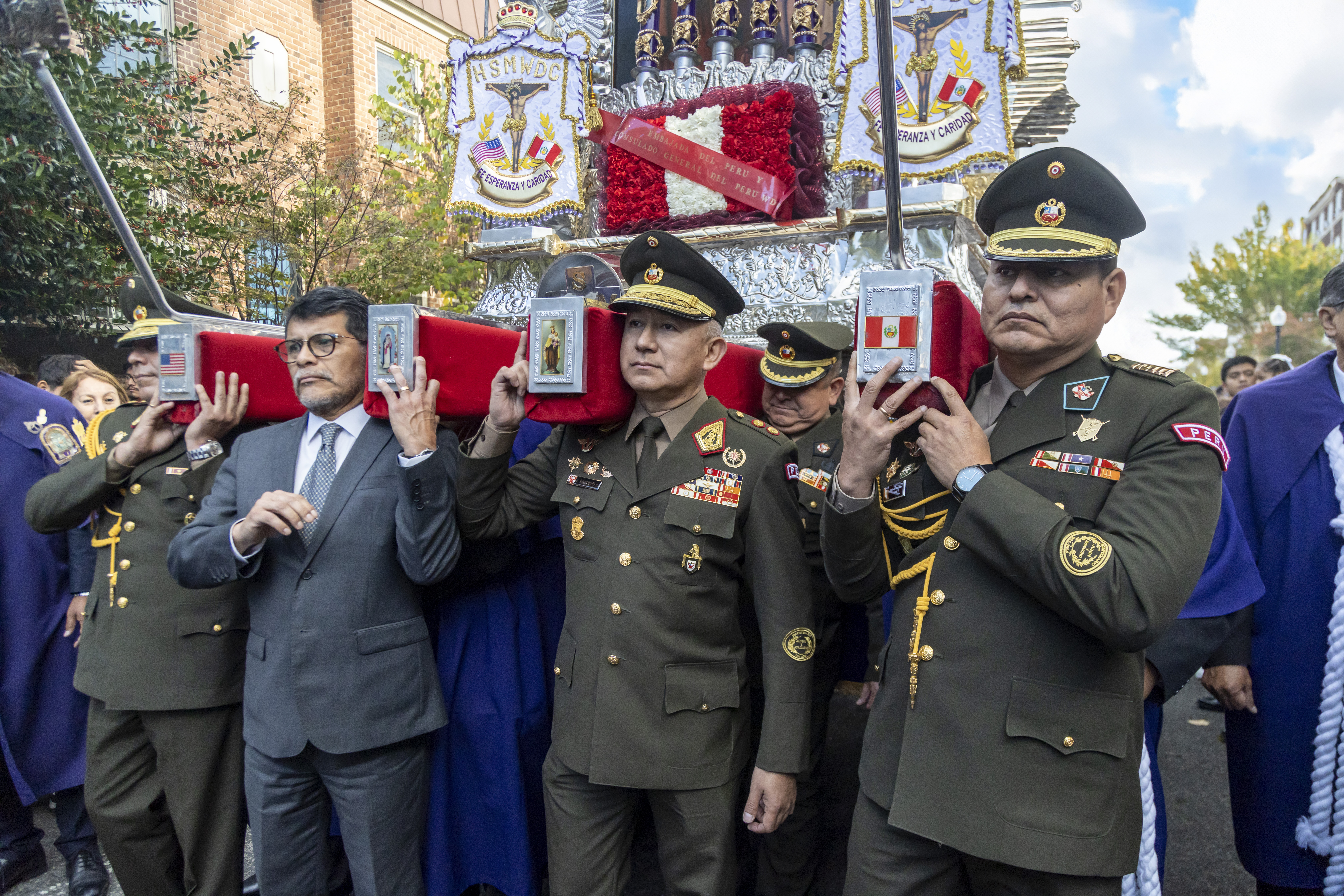 La Santa Misa contó con la distinguida presencia de autoridades del gobierno peruano, el Cónsul General del Perú en Washington D.C., Sr. Javier Prado, y autoridades militares, quienes brindaron un gran realce a la ceremonia, demostrando el profundo vínculo entre la comunidad y sus tradiciones.