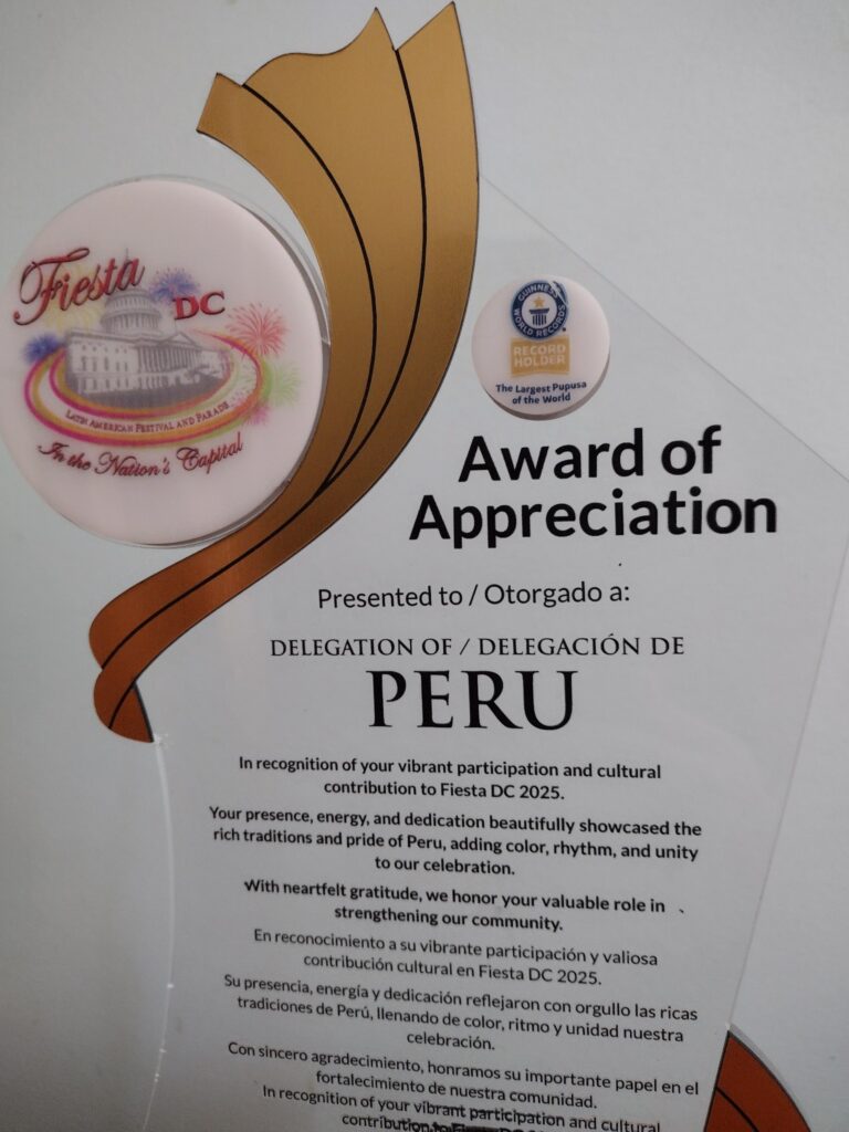 La vibrante energía y la riqueza cultural de Perú se hicieron sentir con fuerza en el corazón de los Estados Unidos. La delegación peruana, conformada por voluntarios entusiastas y dedicados grupos de danzas folklóricas, recibió un merecido reconocimiento por su destacada participación en el tradicional Gran Parade de Fiesta DC, el festival latino más grande del area de Washington DC.